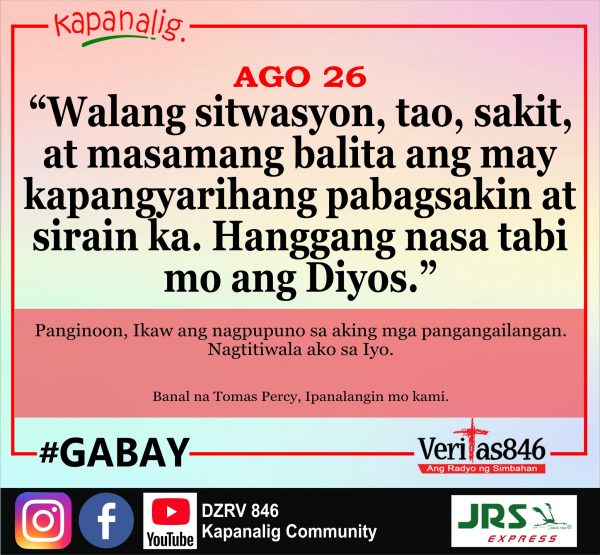 376 total views Biyernes ng Ika-21 Linggo sa Karaniwang Panahon (II) MASS PRESIDER: Rev. Fr. John Harvey Bagos [fb_plugin video href=https://www.facebook.com/DZRV846/videos/853134209005179] [give_form id=”72114″ show_title=”true” show_goal=”false” show_content=”none”