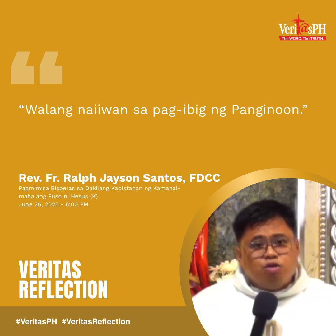 #VERITASREFLECTION: “Walang naiiwan sa pag-ibig ng Panginoon.” ganun ka kahalaga sa Panginoon kapanalig! yung akala mo na hindi ka mahal ng Diyos pero hindi mo alam na lubos ka nyan iniibig! Hindi kailanman mang iiwan ang Panginoon! ang pag -ibig nya ay wagas lalung higit sa taong nagbabalik loob sa kanya