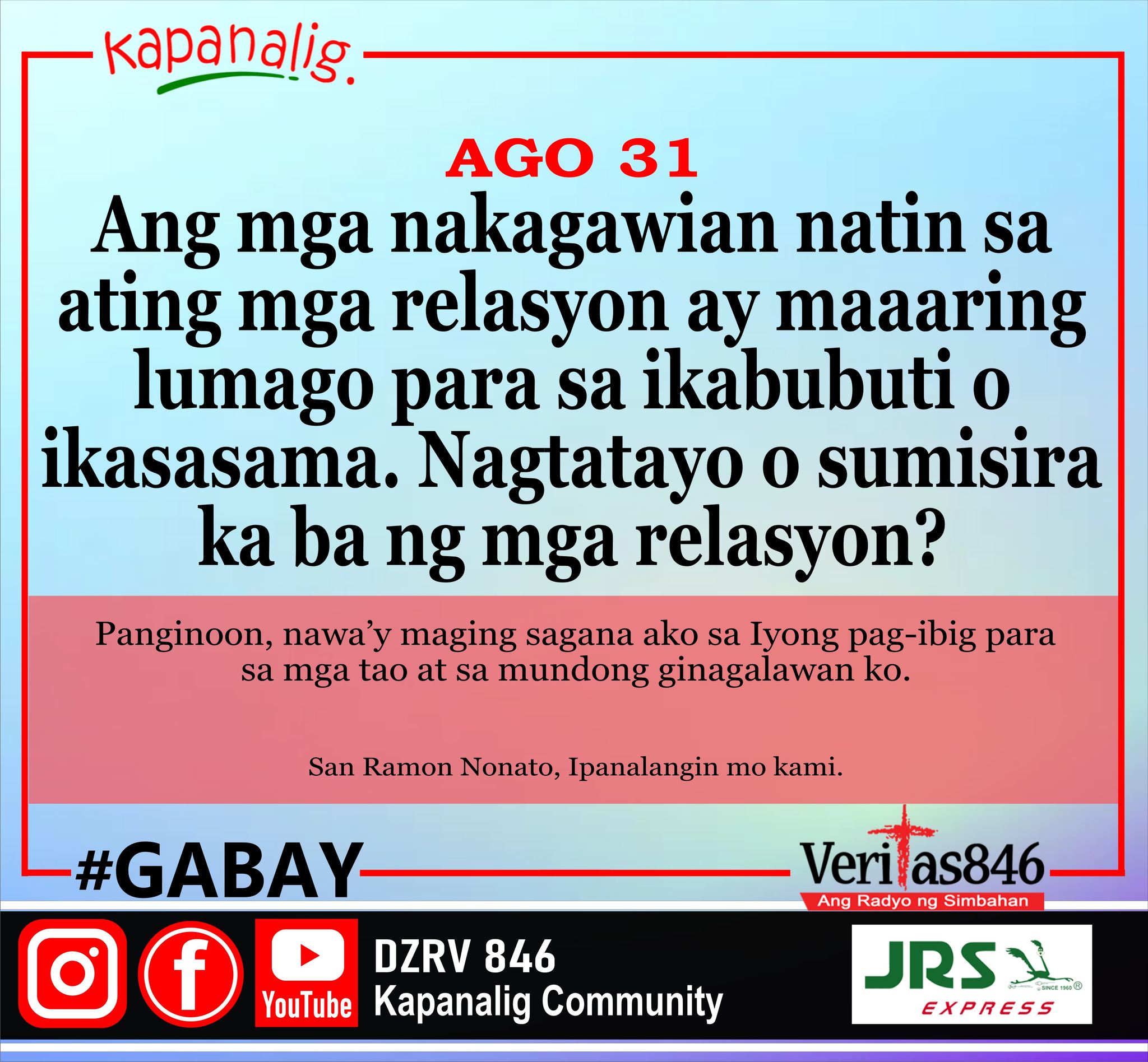 187,500 total views Mga Kapanalig, nakasaad sa Galacia 6:2, “magtulungan kayo sa pagbuhat ng pasanin ng bawat isa.” Sa kabila ng krisis na kinahaharap ng ating