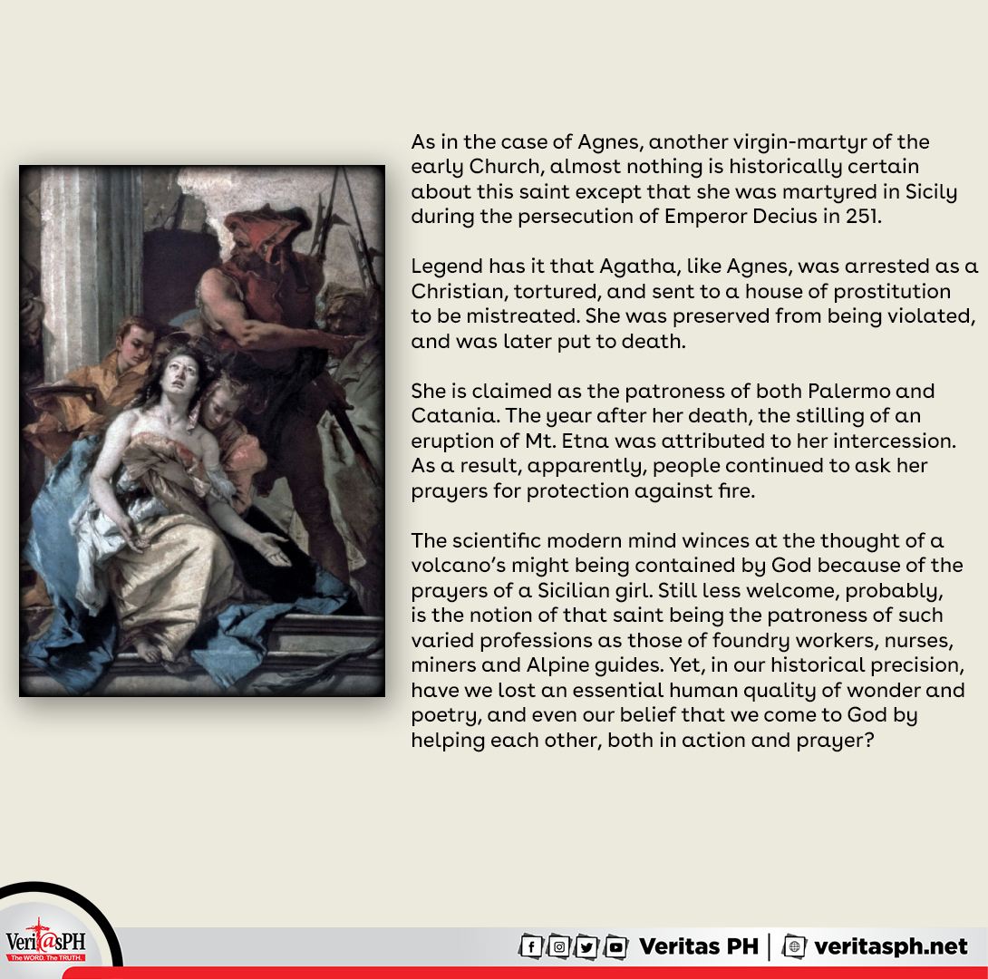 Remembering the courage and faith of St. Agatha, a beacon of strength in the face of adversity. On her memorial let’s draw inspiration from her resilience and kindness, standing firm in our beliefs and spreading love in every challenge.